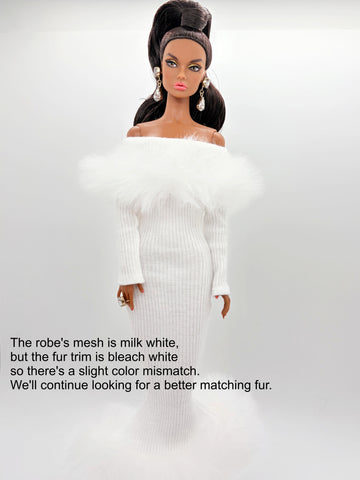 C012 Off-Shouldle Ribbed Slim Fit Dress with Faux Fur Trim & Fishtail Hem Handmade for 12" Fashion Dolls Like PP, Fashion Royalty, NuFace