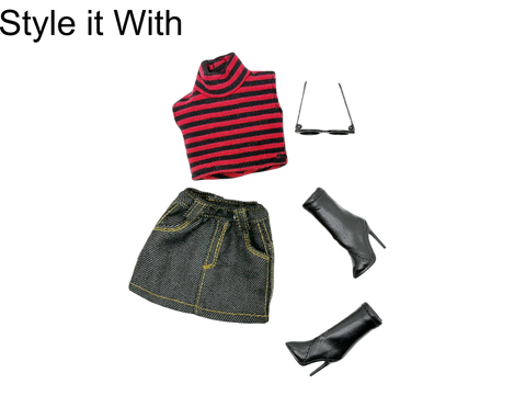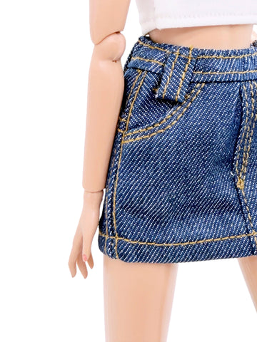 C079 Denim Skirt for 12" Dolls, Handmade Doll Clothes, Fits Dolls Like FR, Nu Face, Poppy Parker Fashion Doll
