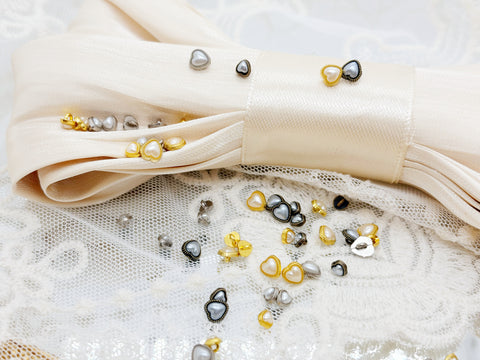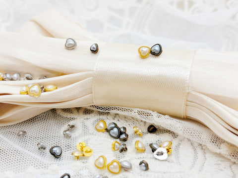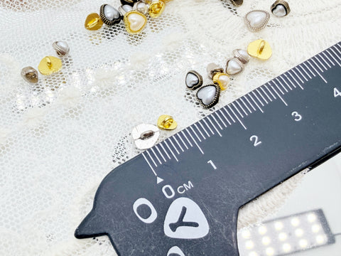 B349 Heart Shape Metal Shank Buttons with Pearl | 4mm & 5mm Micro Sizes | for 12" Doll Clothes Like FR, Blythe, BJD